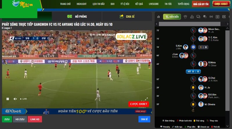Với những anh em bận rộn, không thể ngồi xem trọn trận, Mi Tom TV có livescore thời gian thực, hiển thị tỷ số, số cú sút, thẻ phạt, thay người… tất cả đều cập nhật từng giây.