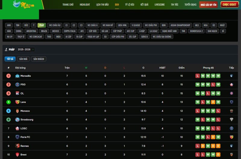 - Cập nhật tự động: Mỗi khi trận kết thúc, điểm số, hiệu số và vị trí của các đội được làm mới ngay.
